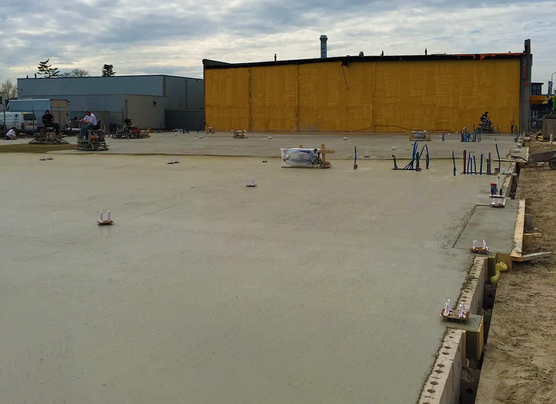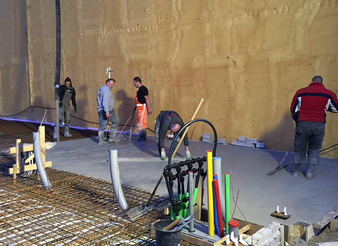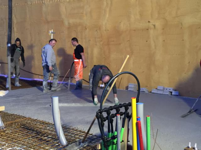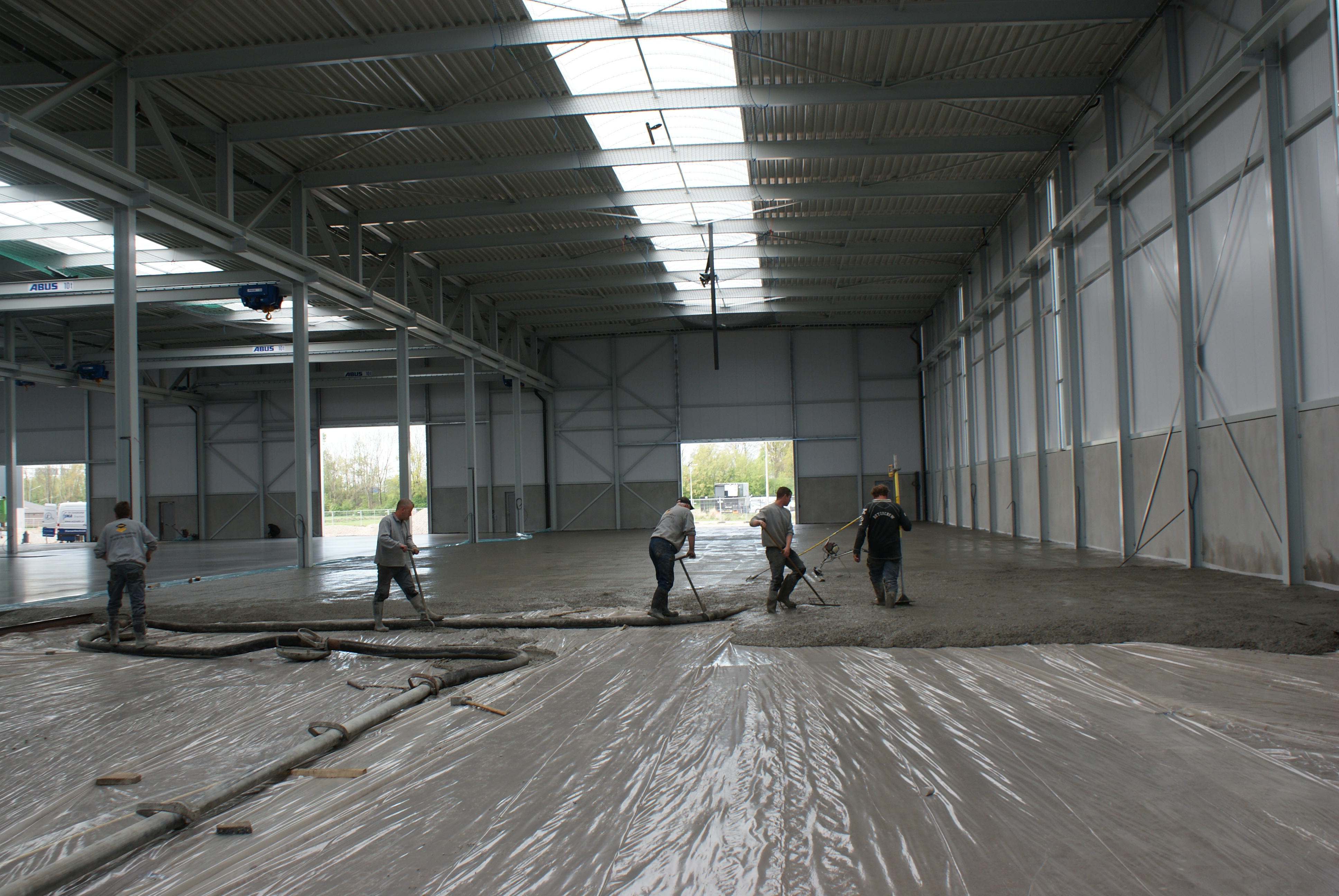 Betonspecie wordt door middel van een betonpomp gestort, vlak geharkt en verdicht. Het wordt beton door middel van een trilplaat naverdicht worden en vervolgens gladgespaand om een zo vlak mogelijk resultaat te krijgen.